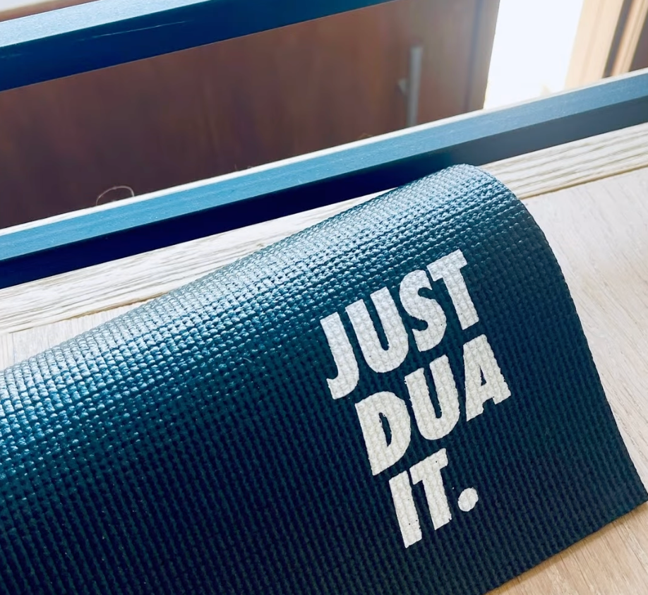 Find balance and mindfulness with our sleek black yoga mat, crafted for stability, comfort, and durability. Featuring "Just Dua It," it’s perfect for yoga, meditation, and fitness—at home or on the go.